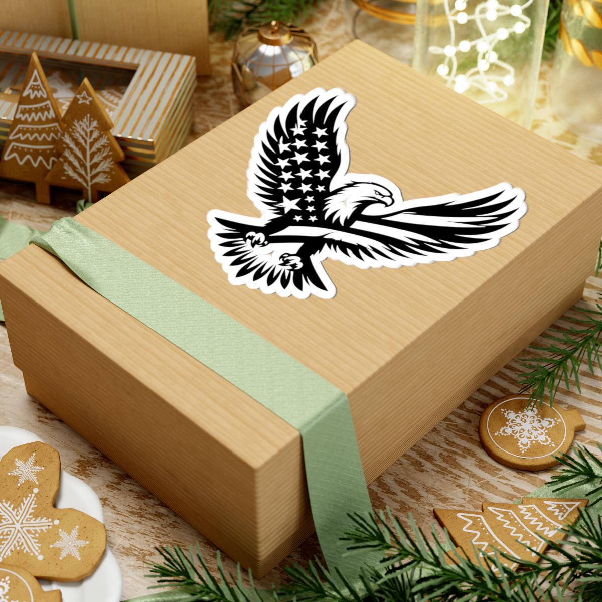Make a bold statement of American pride with this striking Patriotic Eagle Sticker. Featuring a fierce bald eagle with outstretched wings filled with the stars and stripes of the American flag, this design is the ultimate symbol of freedom, strength, and national spirit.