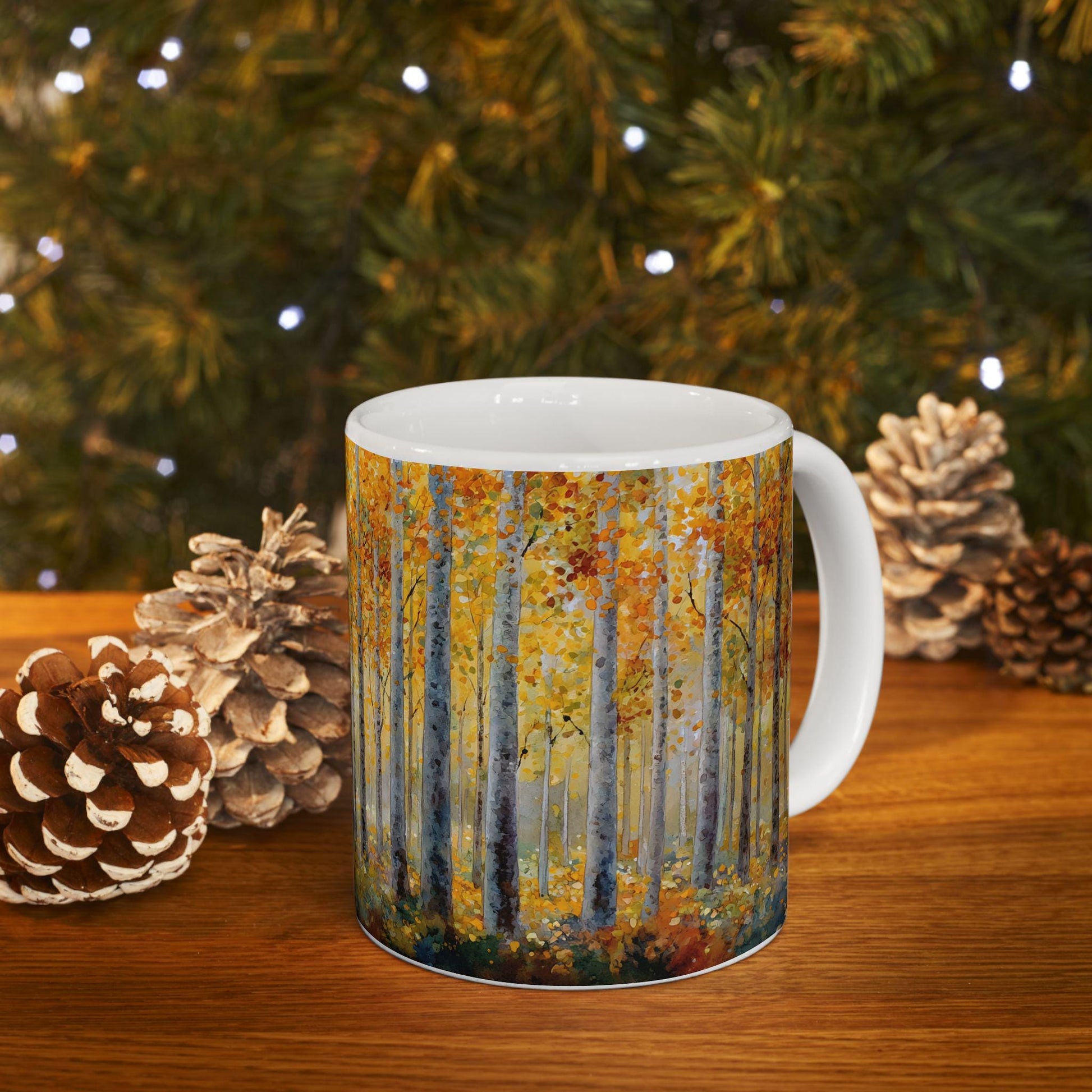 Autumn Birch Forest Art Mug | Cozy Fall Coffee Cup, 15 oz