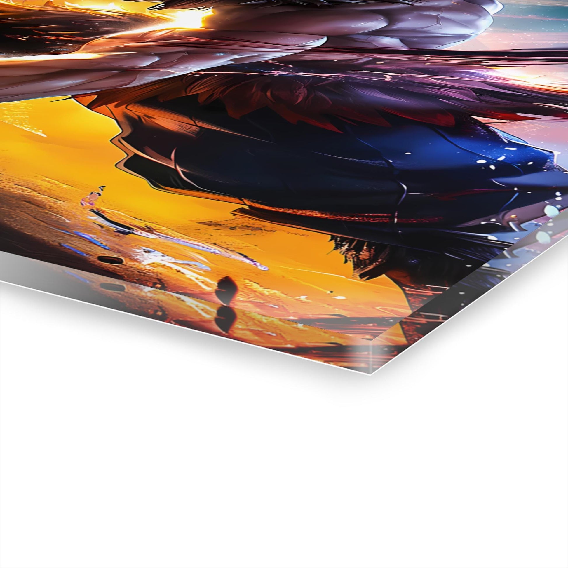 Crafted using high definition printing on premium aluminum panels, this metal artwork delivers exceptional clarity, intense depth, and vivid color saturation. The smooth reflective surface enhances every detail, from glowing energy effects to dramatic shadows, creating artwork that feels alive and dimensional. Unlike traditional canvas prints, aluminum metal prints provide sharper contrast, richer blacks, and long lasting brilliance that will not easily fade.
