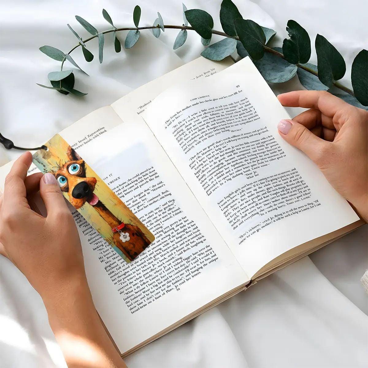 ColorFlow | Bright Blue Eyed Dog Art Metal Bookmark Cheerful Pet Lover Gift for Readers | Optional Personalization