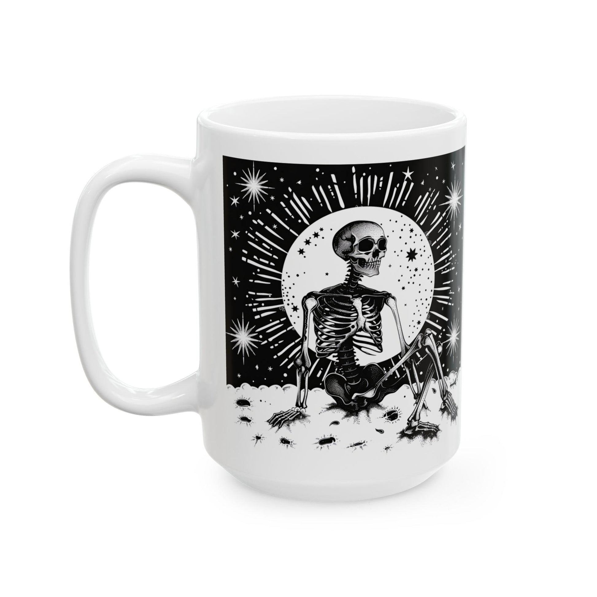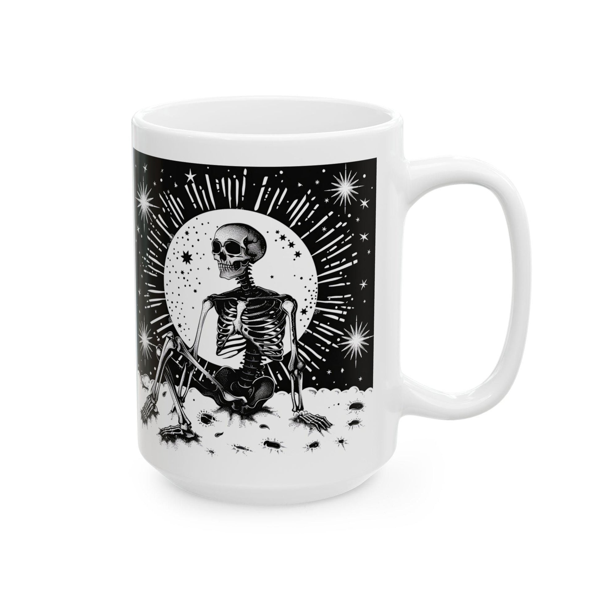 ColorFlow | Celestial Skeleton Mug | Gothic Moon 15oz Ceramic Coffee Cup | Witchy Cosmic Art Mug Gift for Dark Souls