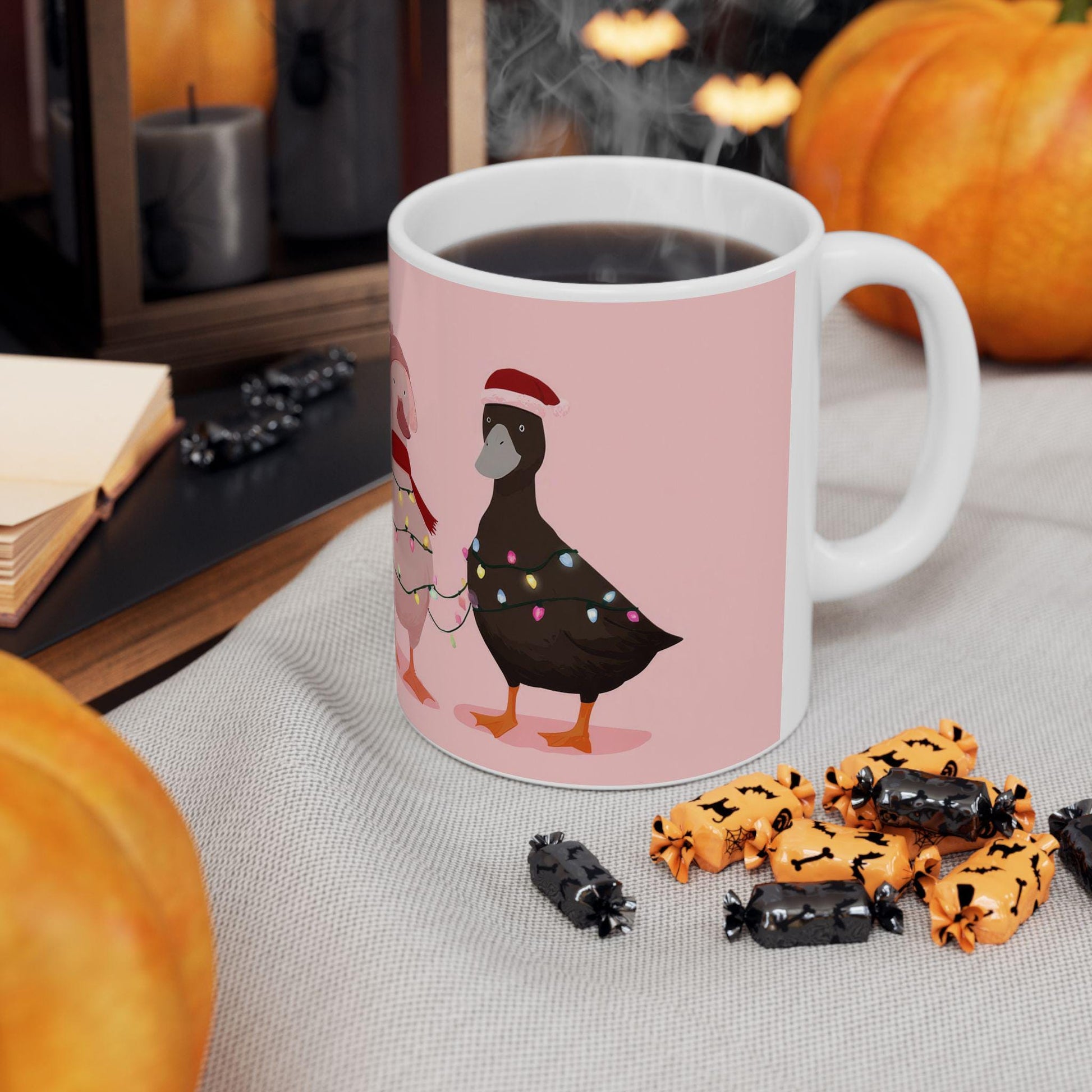Add holiday cheer and humor to your morning coffee with the ColorFlow Christmas Duck Mug, a playful 15 oz ceramic cup that’s sure to spread smiles all season long. Featuring four adorable ducks wrapped in Christmas lights and dressed in festive hats and scarves, this design captures the perfect mix of cozy farmhouse charm and holiday spirit.