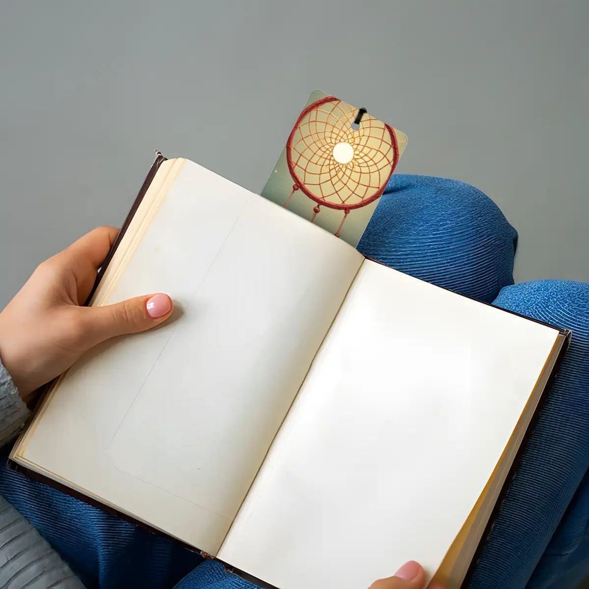 ColorFlow | Dreamcatcher Moon Feather Metal Bookmark Boho Celestial Spiritual Reading Gift | Optional Personalization