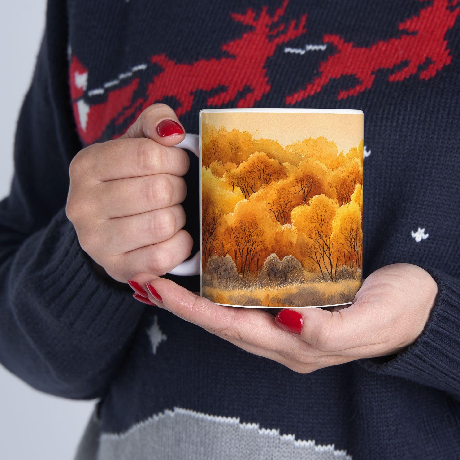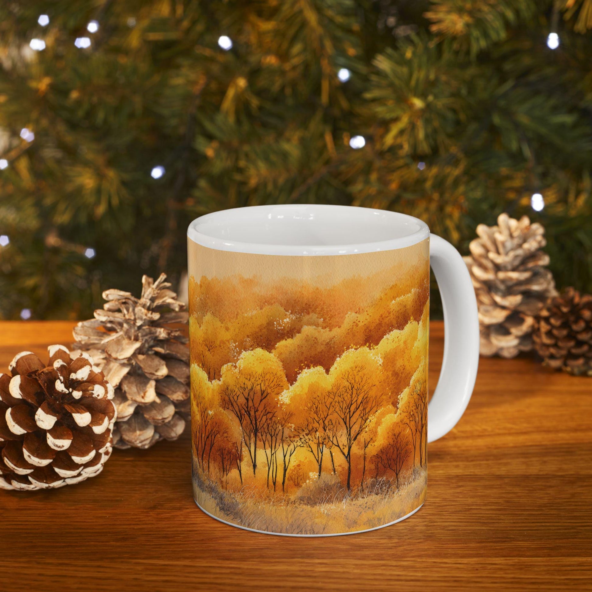 ColorFlow | Golden Fall Forest Mug | 15 oz Ceramic Coffee Cup | Autumn Art Mug | Warm Nature Inspired Gift