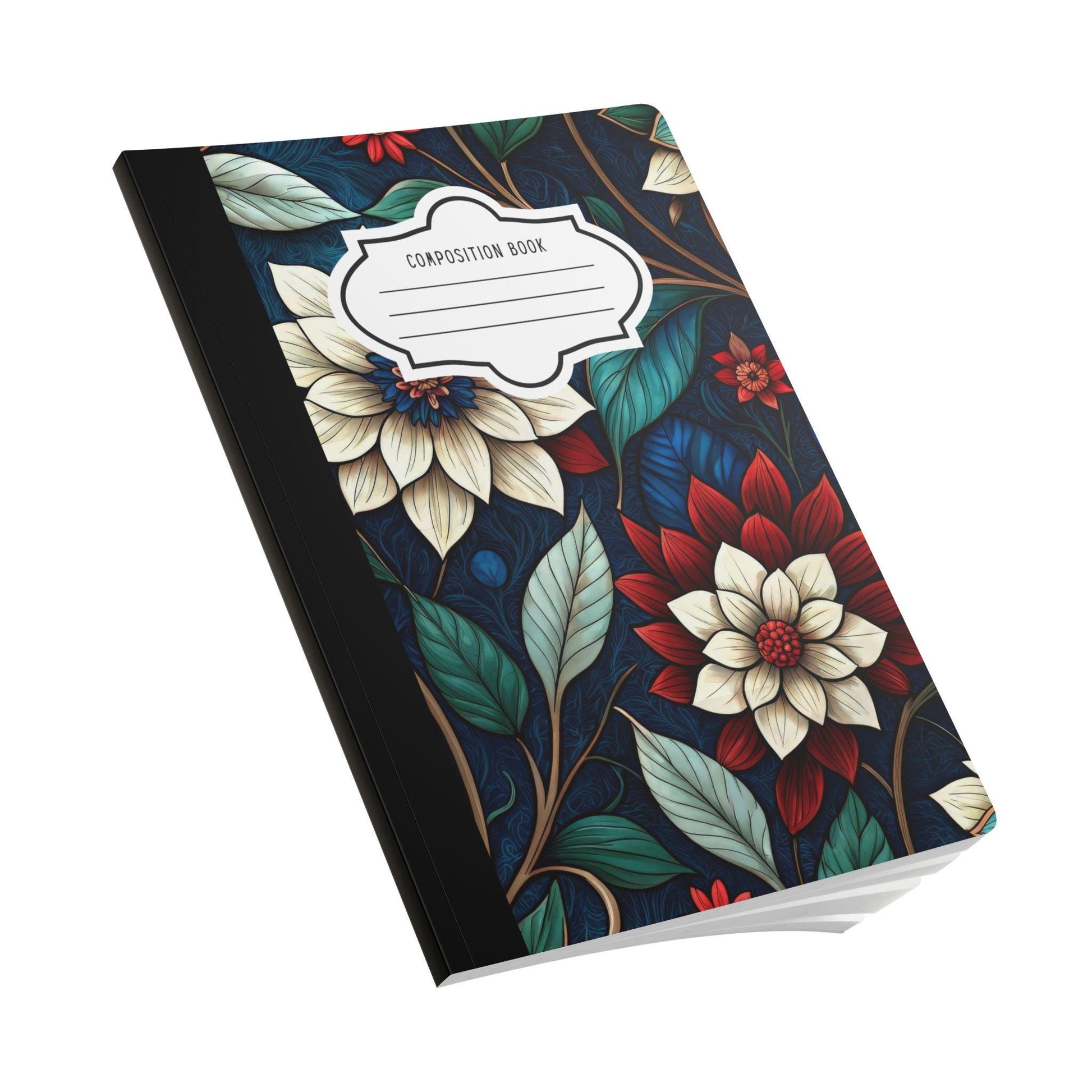 ColorFlow | Midnight Elegance Floral Composition Notebook | Chic Botanical Art Journal for School Work and Writing