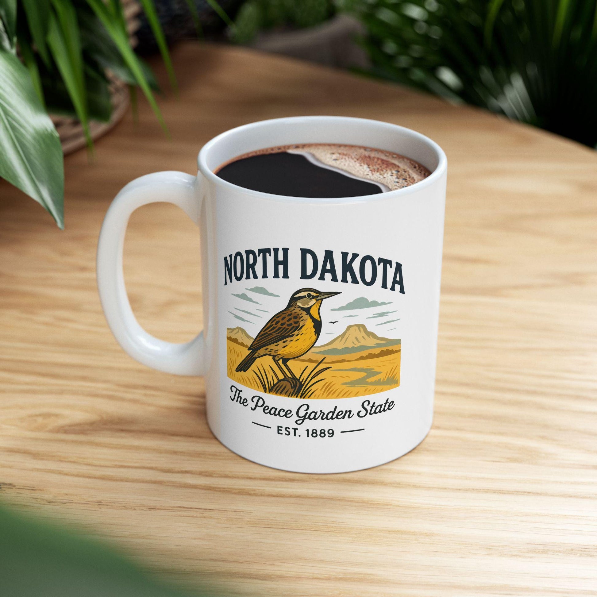 ColorFlow | North Dakota The Peace Garden State Mug | Western Meadowlark Coffee Cup | Prairie Travel Gift | 15oz Ceramic Mug
