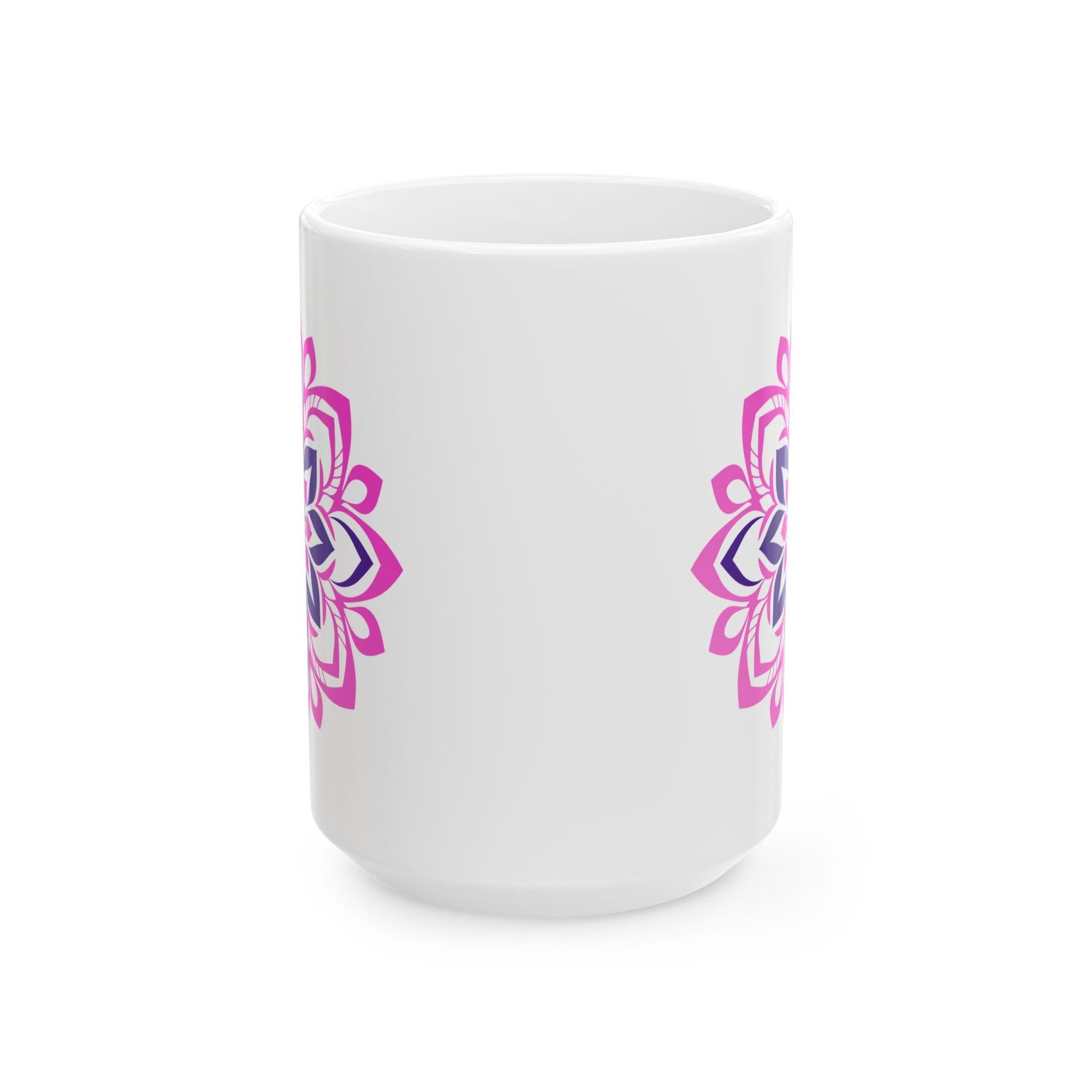 Pink Lotus Mandala Coffee Mug | Feminine Floral Art, 15oz