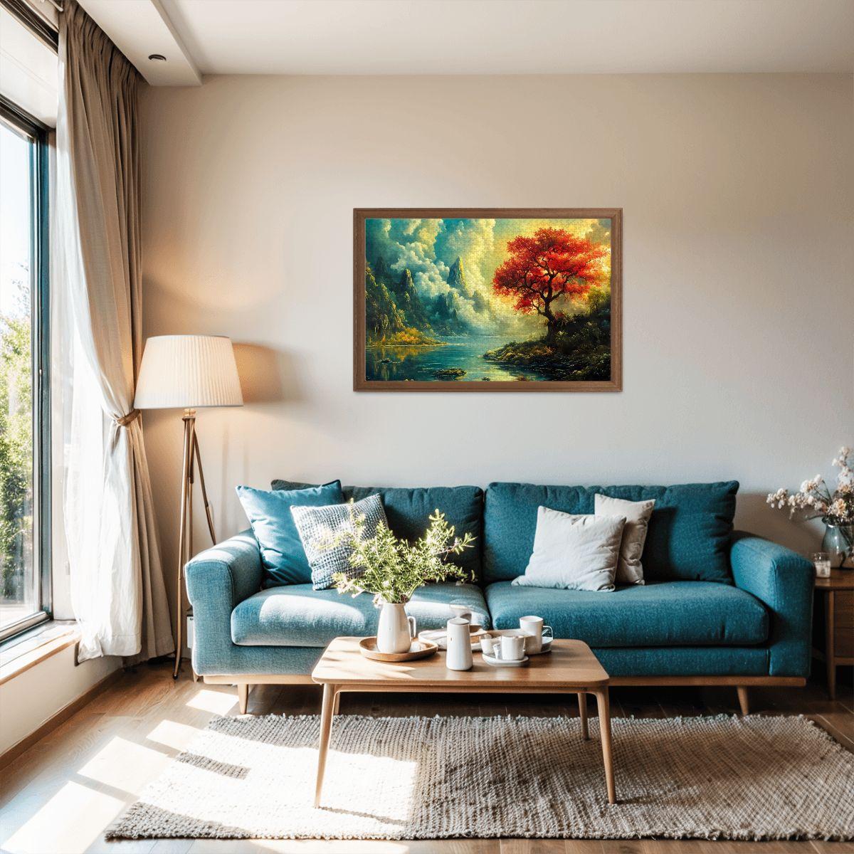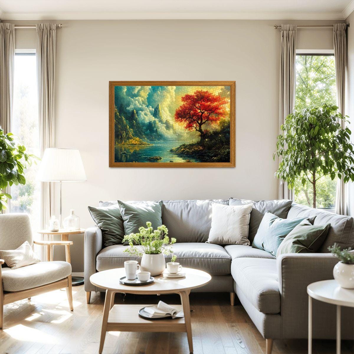 Red Tree Fantasy Landscape Wooden Jigsaw Puzzle -