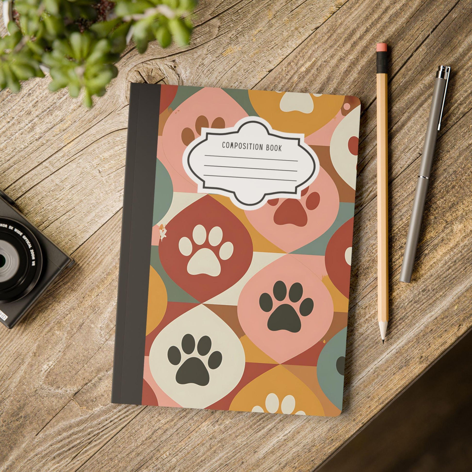 Retro Geometric Paw Print Notebook: College Ruled Journal