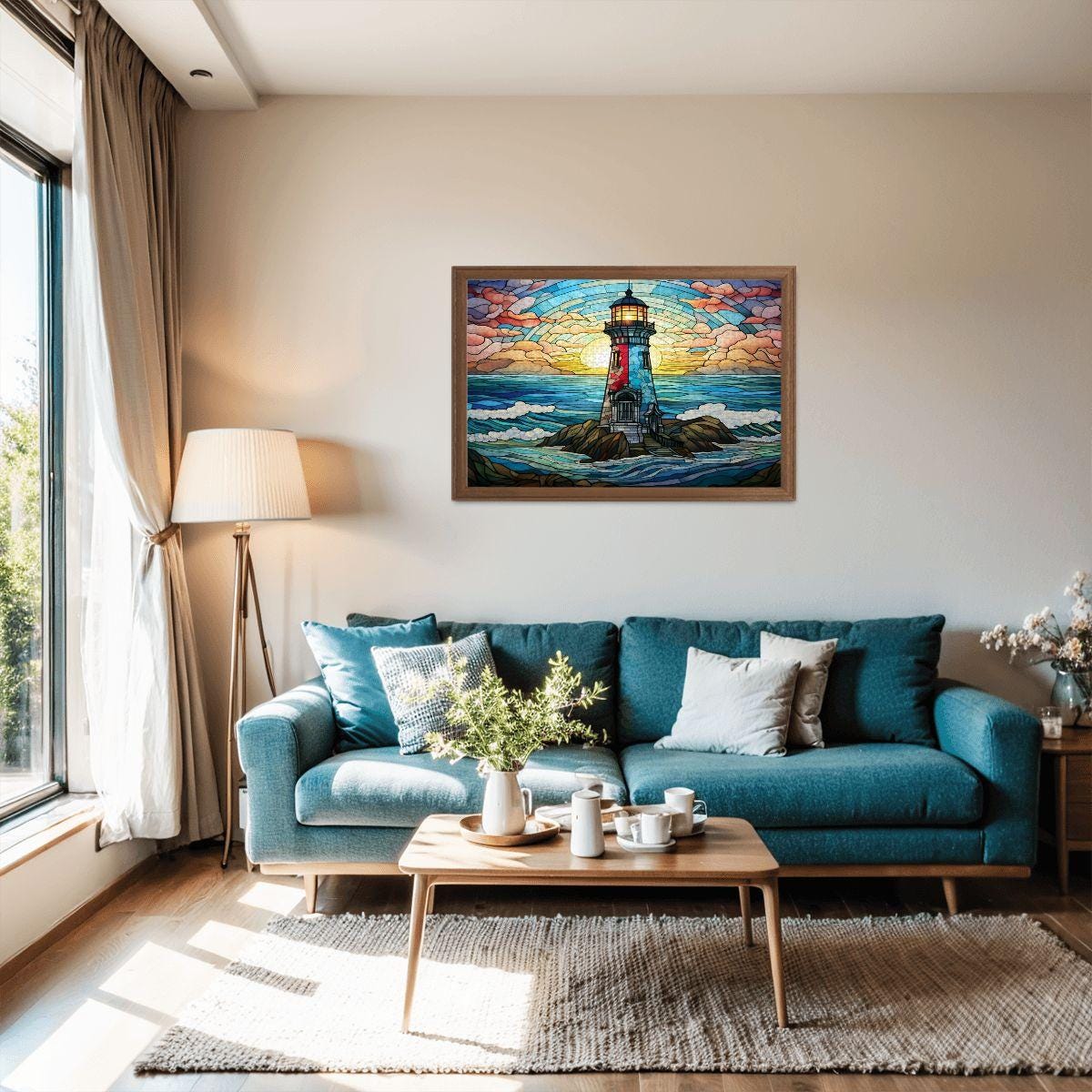 Stained Glass Lighthouse Puzzle: Coastal Sunset Wooden Jigsaw ( Option Available