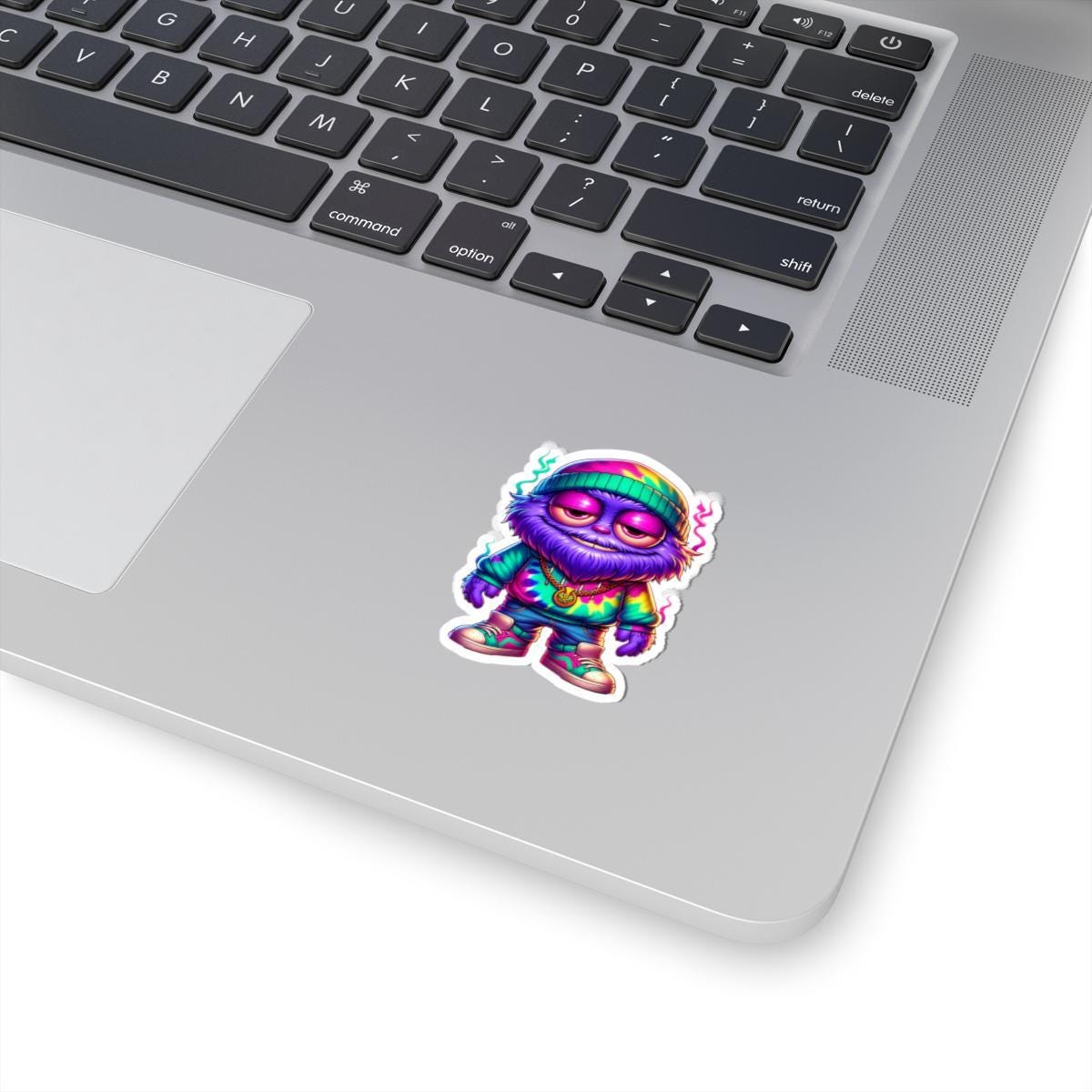 Add some groovy energy to your collection with this Tie-Dye Hoodie Chill Monster sticker πŸŒ€πŸ§’πŸ‘Ÿ! Featuring a fuzzy purple creature with a beanie, sneakers, gold chain, and a rainbow tie-dye hoodie, this waterproof vinyl decal is perfect for fans of retro streetwear, psychedelic art, and bold character designs.