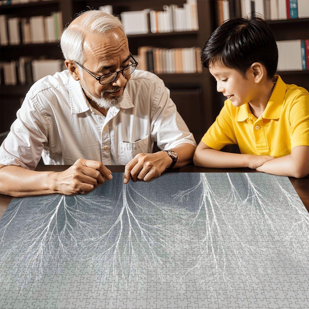 Step into the stillness of a serene winter forest with this minimalist wooden jigsaw puzzle. Featuring a grove of bare white trees etched against a soft, silvery-grey background, this design evokes calm, clarity, and the quiet magic of snow-dusted woods. It‘s the perfect puzzle for those who love Scandinavian decor, monochrome art, and peaceful moments.